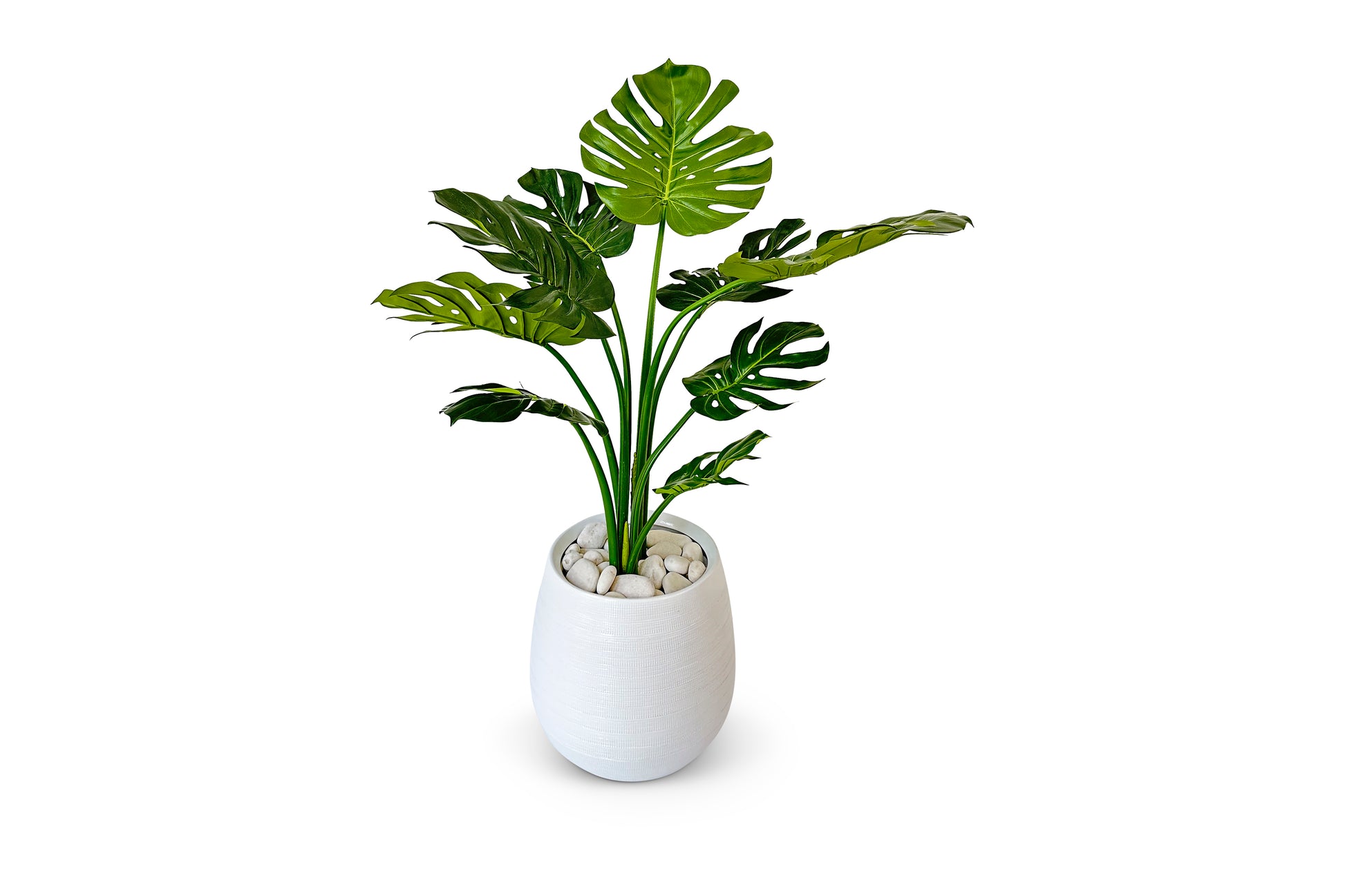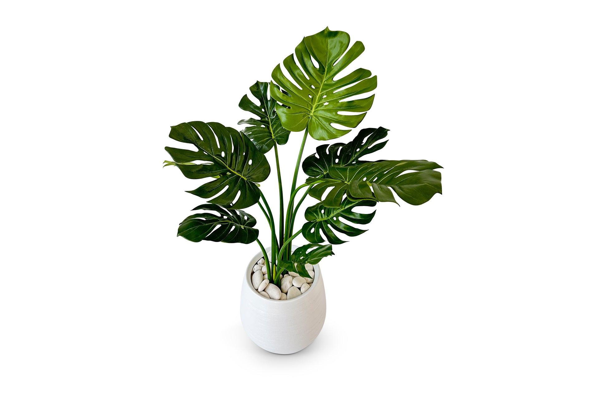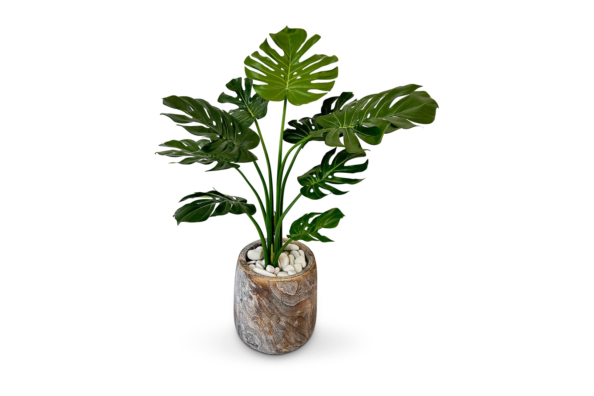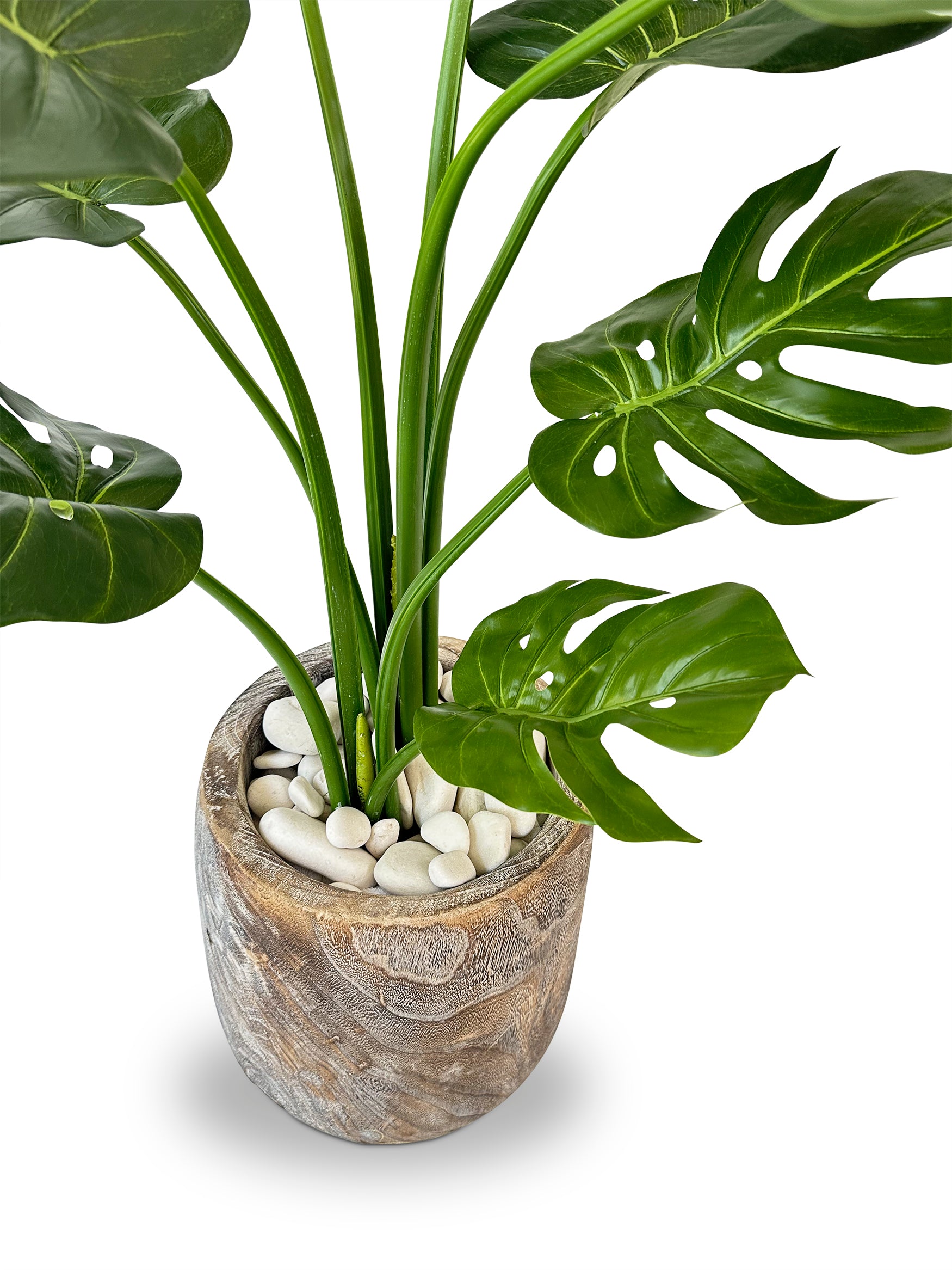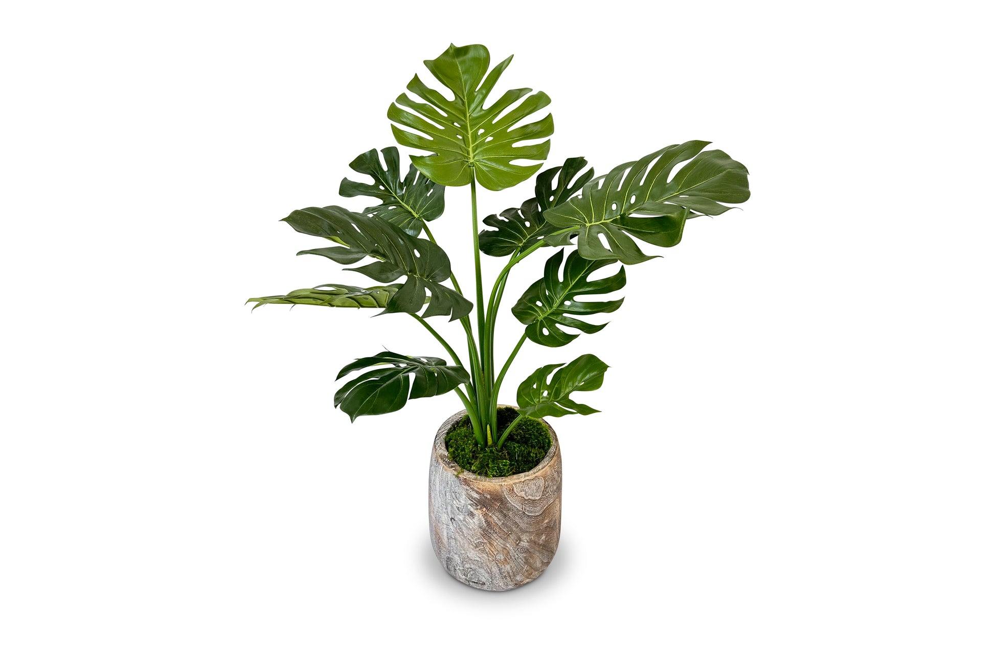 Faux Monstera plant in white ceramic or wood pot with choice of topping
