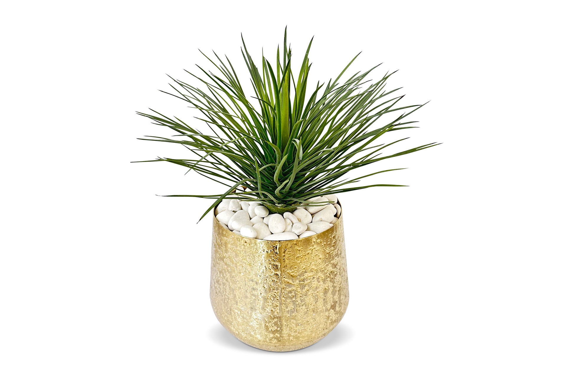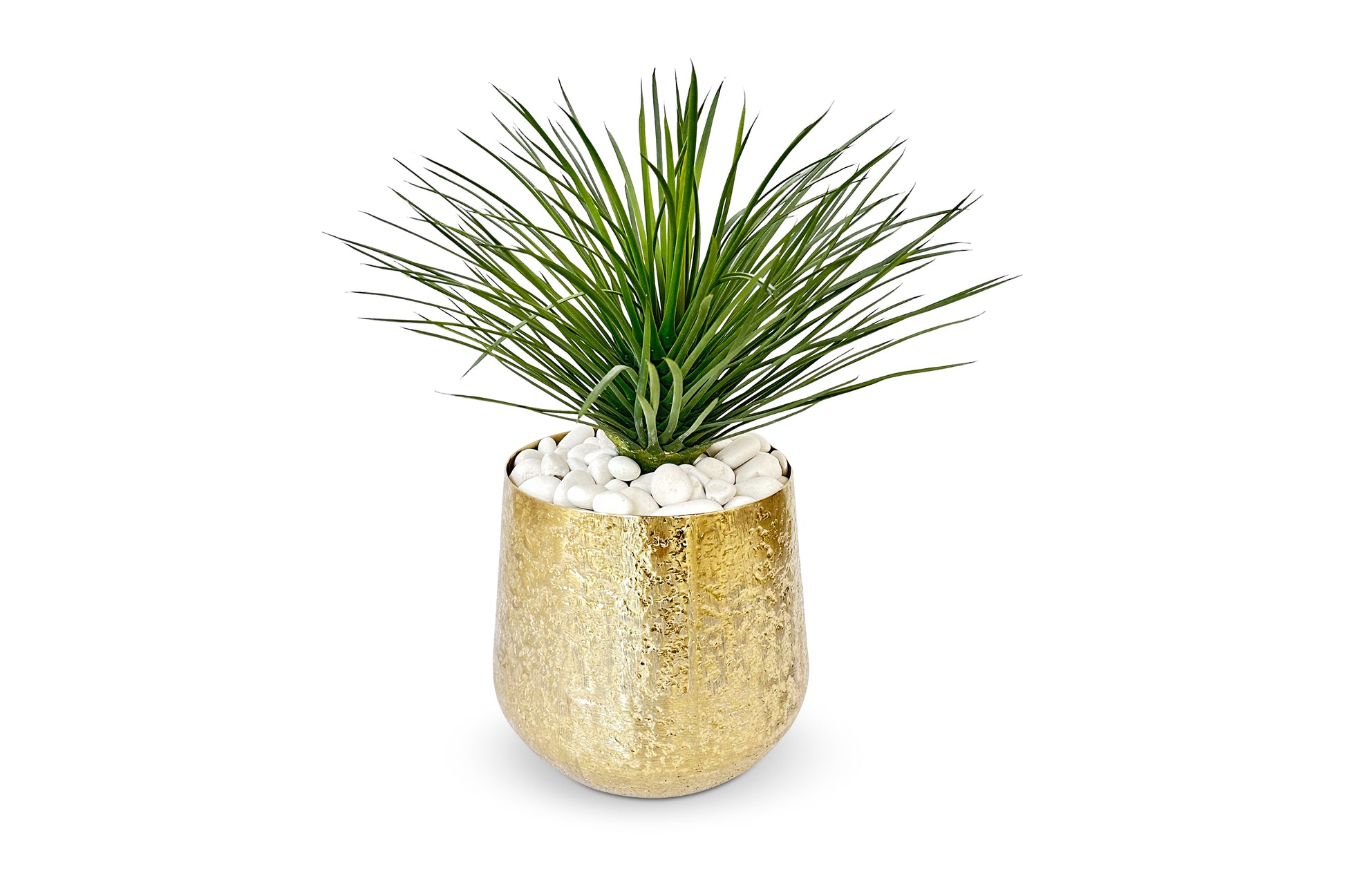 Faux Yucca Plant in pot with white egg pebble rock