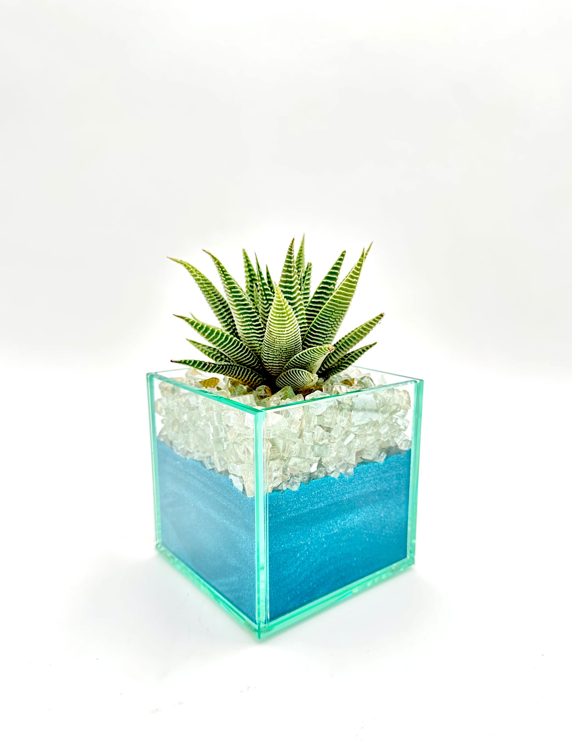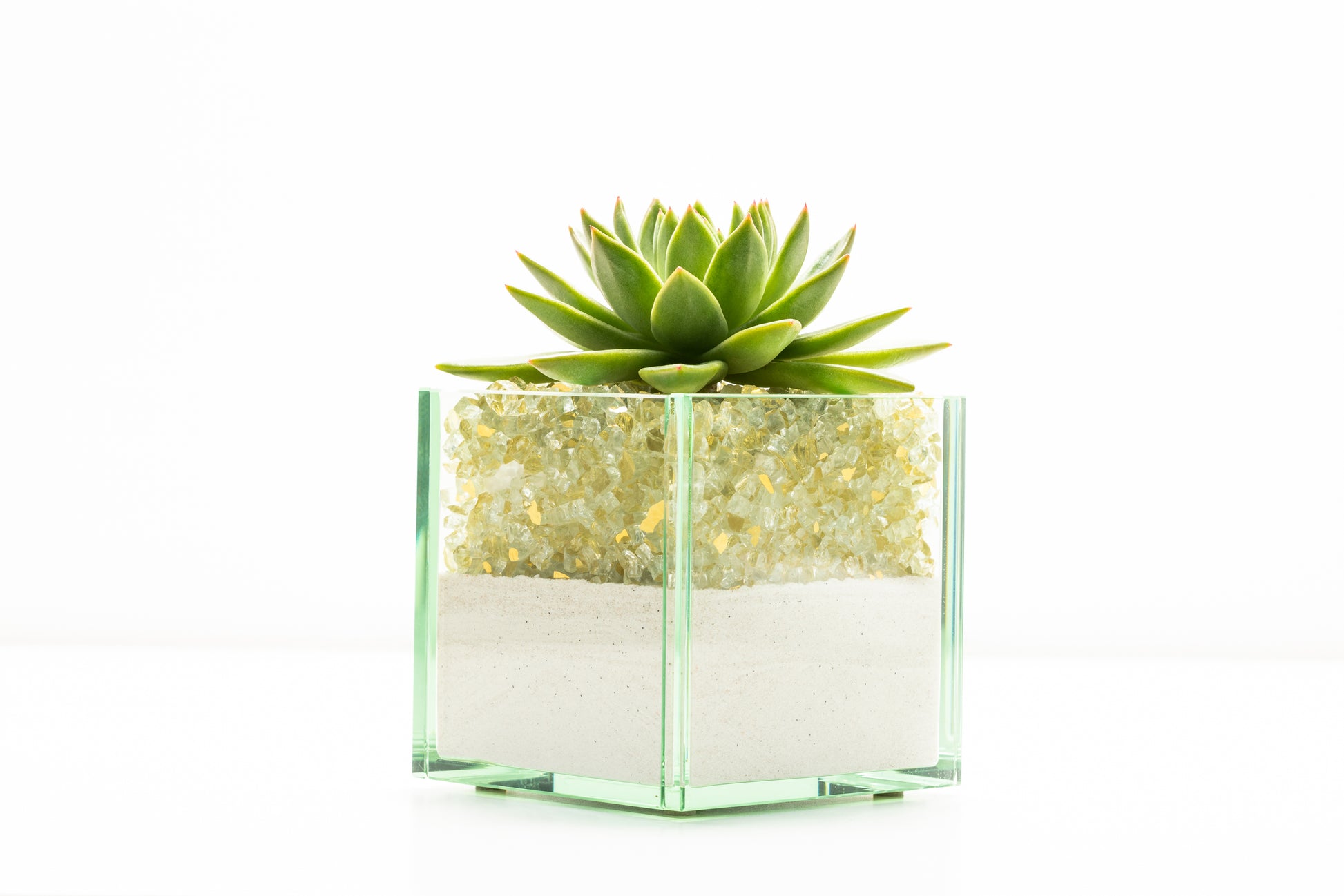 Our 4" Glass cubes with custom hand-poured sand designs and mirrored cut glass have become a trademark of Urban Spikes and are part of our signature collection